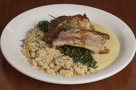 MAR E CIA – Costela Suina à moda Alagoana assada em forno servida por musseline de macaxeira, farofa de banana da terra e crispes de couve. Rua Projetada, 23 – Zona da Praia- Paripueira/ Telefone: 82 3293-2031