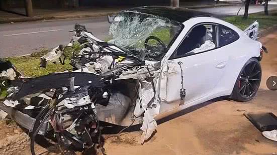 Peças do veículo ficaram espalhadas no asfalto devido ao impacto da batida. O Porsche avaliado em cerca de R$ 800 mil ficou destruído.