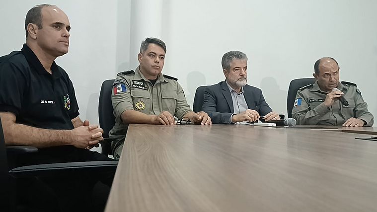 ![]() Cúpula da SSP em coletiva nesta tarde (Foto: Paulo Victor Malta / TNH1) |