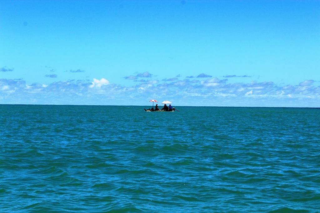 Lá, o mar azul da cor do céu tem os corais mais bonitos que já vi em todo o litoral Norte. O passeio de barco até às piscinas depende da maré baixa, e o tempo de permanência é de cerca de 2 horas. Lembrando que quando a maré começa a subir é tempo de retornar à terra firme. No percurso da piscina Salvador, dá para assistir o espetáculo da pesca artesanal, como ver o cesto cheio de peixinhos, e polvo. Até tentei comprar, mas sem sucesso. No dia de domingo, o polvo já tinha destino: a cozinha do pescador.
