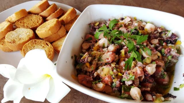 Sem leite – Mas confesso que fiquei dividida, porque o polvo no vinagrete é show de bola. O molusco marinho vem escoltado com torradas e é bem temperado e macio. Nota mil.