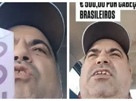 Português oferece 500 euros (cerca de R$ 3.100 na atual cotação) por "cada cabeça de brasileiro" que lhe for entregue. Em vídeo publicado nas redes sociais, que rapidamente viralizou, o homem, identificado como João Oliveira, morador da cidade de Aveiro, refere-se aos brasileiros que moram em Portugal como "zukas" e "raça maldita".
