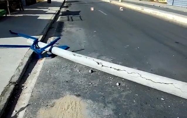 A Sima informou que o poste é de responsabilidade do município e que uma equipe foi acionado para efetuar a substituição do equipamento e liberação da via.