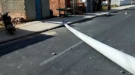 Ainda assim, apesar da base do poste estar completamente destruída, ainda não é possível dizer se o equipamento caiu sozinho, ou se ele foi derrubado após uma colisão.