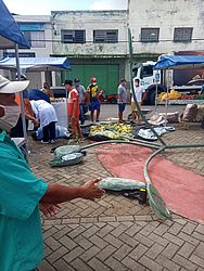 Nas imagens também é possível constatar que clientes e feirantes não estavam respeitando o distanciamento social na feira.