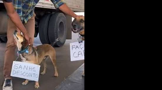 Posto divulgou um vídeo nas redes sociais oferecendo desconto a quem fizer carinho em cachorros adotados pelo estabelecimento. Nas imagens, os cães usam placas com "ganhe desconto" e "faça um carinho".