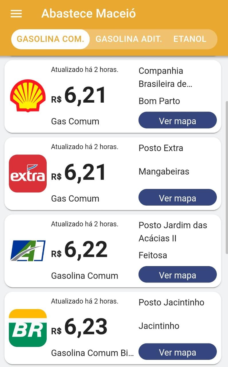 Já o preço da gasolina segue em média custando R$ 6,29 na maioria dos postos. Mas o aplicativo mostra que tem posto vendendo a R$ 6,21: