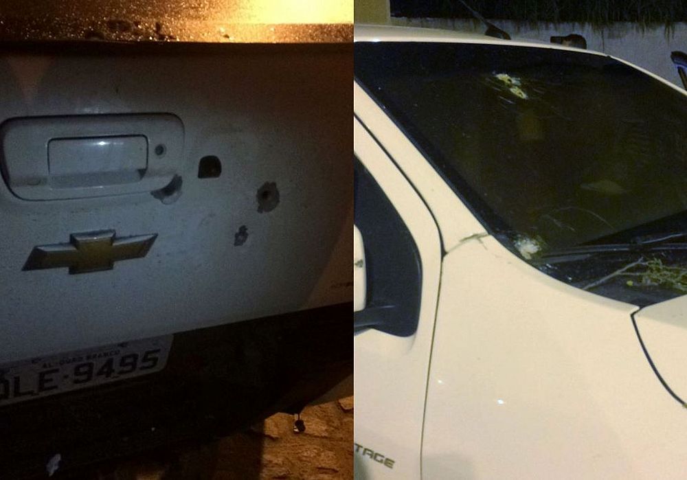 | Carro ficou com marcas dos disparos / Cortesia ao TNH1 |