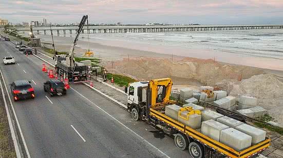 O trecho que compreende a praia do Sobral terá 140 metros de contenção com blocos maciços na fundação e anéis hexagonais na formação do muro de contenção.