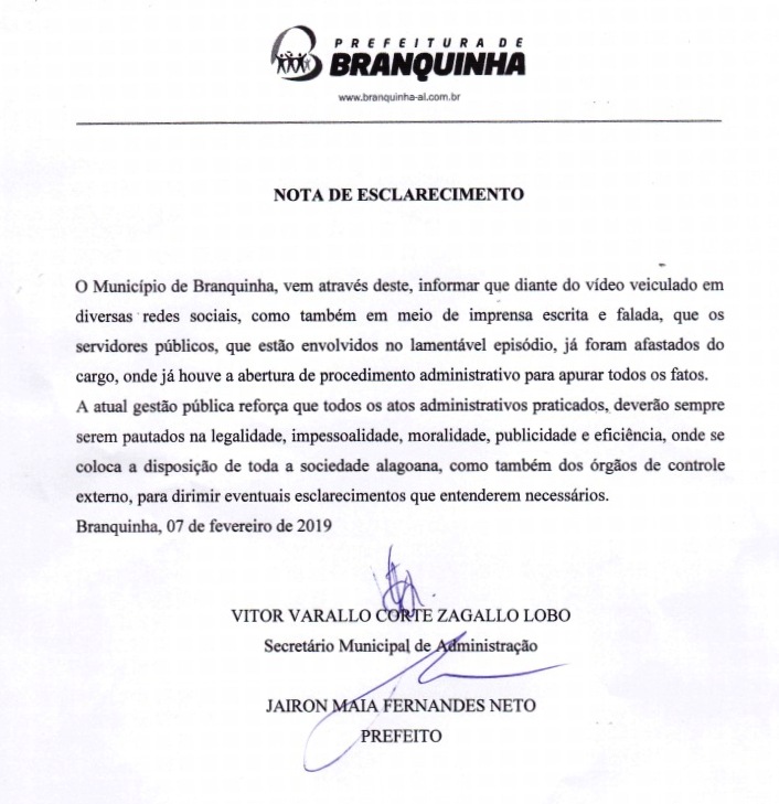 A Prefeitura de Branquinha, Zona da Mata de Alagoas, afastou dos cargos os dois guardas municipais filmados quando agrediam um homem detido pelo crime de dano ao patrimônio, na madrugada de 28 de janeiro.