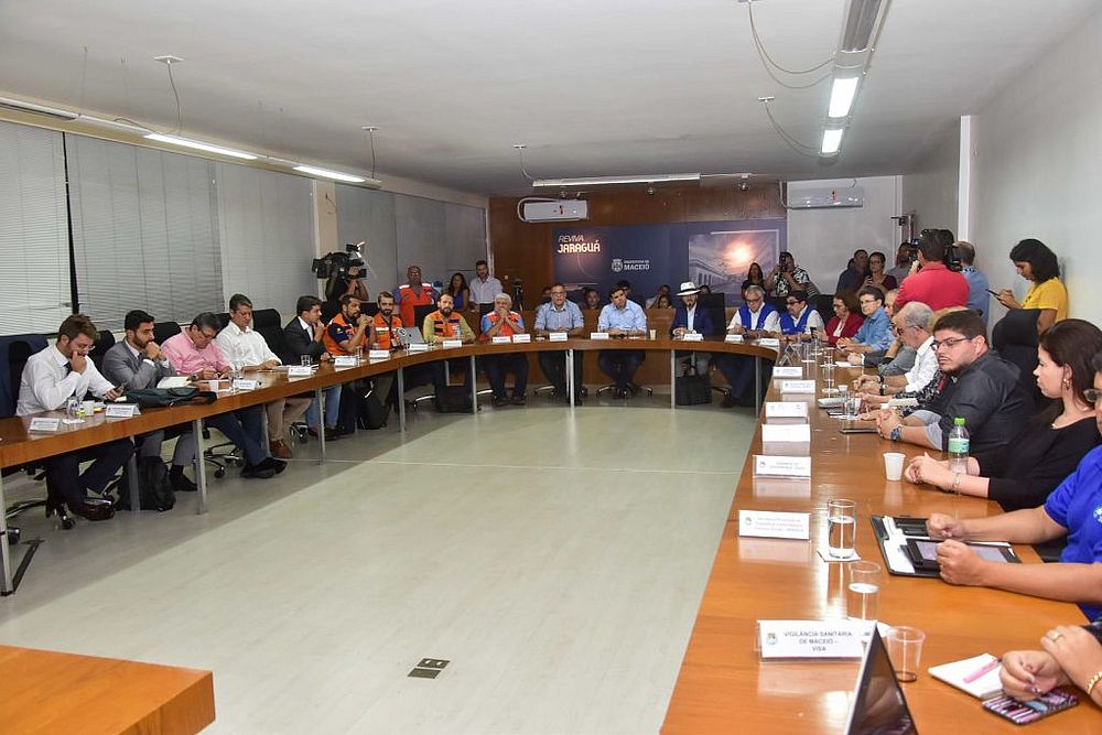 Participaram da reunião os gestores municipais de Educação, Ana Dayse Dórea, de Transporte e Trânsito, Antônio Moura, de Infraestrutura, Mac Lira, de Desenvolvimento Sustentável, Gustavo Acioli Torres, de Governo, Eduardo Canuto, e da Defesa Civil, Dinário Lemos.