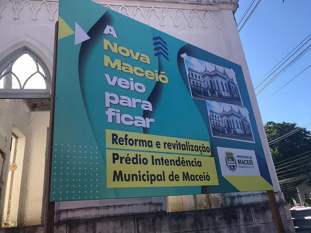 O histórico prédio da antiga Intendência Municipal, no Centro de Maceió, está em obras para a recuperação da infraestrutura degradada por vândalos. A revitalização foi iniciada pela Prefeitura de Maceió, por meio da Superintendência Municipal de Desenvolvimento Sustentável (Sudes), com base no projeto elaborado pela Coordenação Geral de Patrimônio Histórico, da Secretaria Municipal de Desenvolvimento Territorial e Meio Ambiente (Sedet). A obra tem previsão de execução de seis meses e considera todos os métodos necessários sobre preservação do patrimônio cultural.