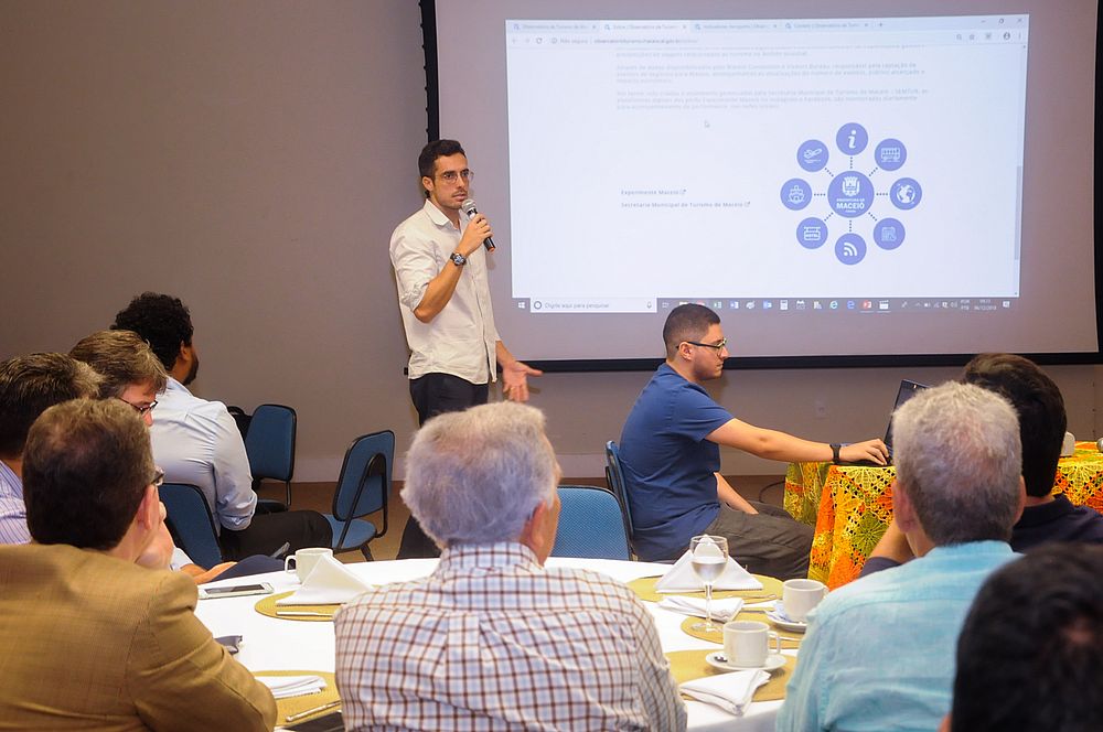 Em seguida, o gestor do Observatório de Turismo de Maceió, Elton Setton, expôs um apanhado geral do trabalho desenvolvido com o estagiário da Semtur na área de tecnologia, Cauê Bittencourt.