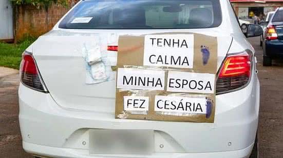 O aviso grudado na traseira do veículo "desenha" para que todo mundo veja que ali está uma criança recém-nascida e, mais, uma mulher recém-parida. "É minha segunda cesárea, e eu sofri muito com o trajeto do hospital para casa no dia que tive alta devido aos buracos da rua. Então, meu marido ficou buscando uma maneira para que eu sofresse menos", explica a mãe, auxiliar administrativo, Lucilene Coronel Cândido, de 40 anos.