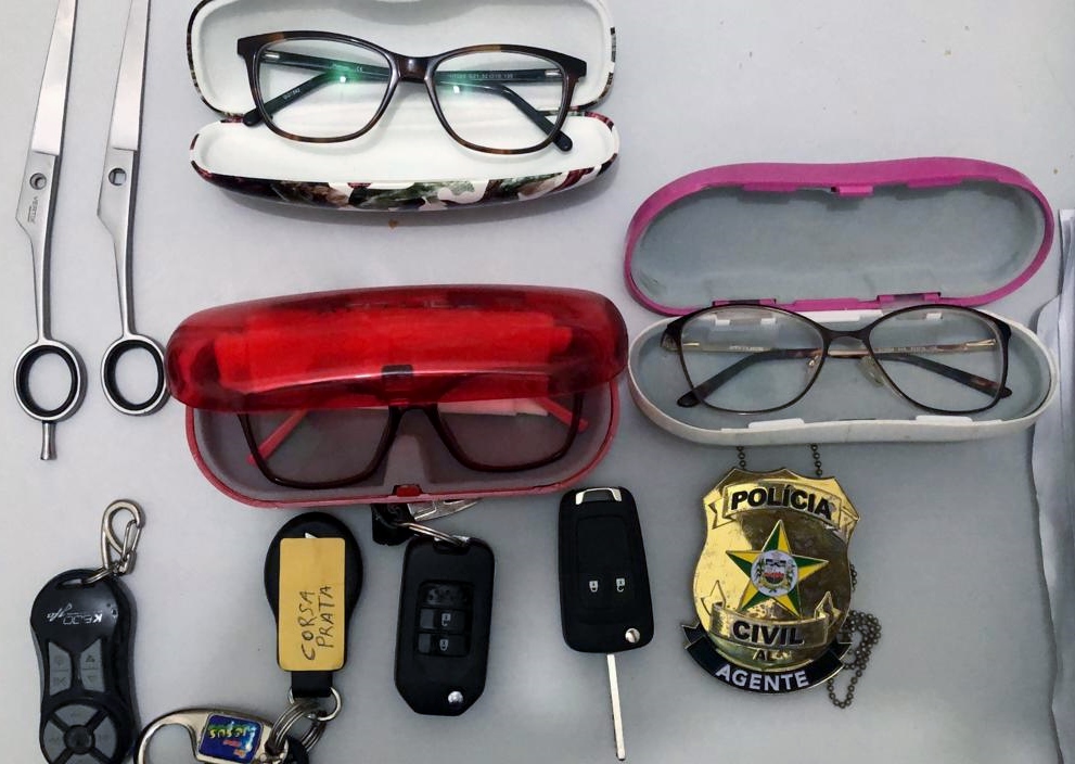 Durante a prisão, foram encontradas bolsas femininas, chaves de carros, uma maquineta de cartão de crédito, entre outros objetos que podem ser das vítimas dos crimes cometidos pela dupla.