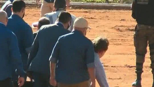 O presidente chegou ao local de helicóptero, cumprimentou algumas pessoas e, quando se dirigia ao hospital, tropeçou e caiu no chão. Ele rapidamente se levantou e seguiu com o grupo que o acompanhava.