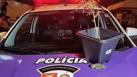 Além da violência doméstica, a mulher confirmou que o jovem usava drogas e cutivava maconha na própria casa. Após buscas, os PMs encontraram o pé de maconha e duas bombinhas da droga.
