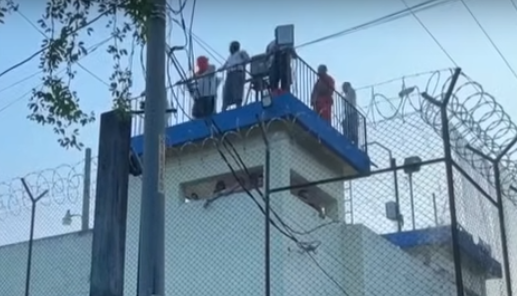 Na prisão de segurança máxima Renovación 1, em Escuintla, detentos mascarados ocuparam as torres de vigia, enquanto policiais e soldados formavam um perímetro externo com ambulâncias e caminhões de bombeiros de prontidão.