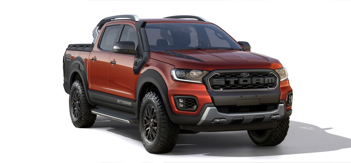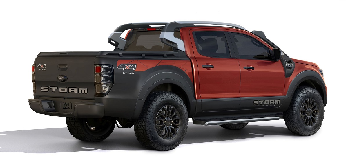 A picape Ranger traz duas propostas de personalização, criadas a partir de modelos diesel com cabine dupla. A Ranger Storm exibe pintura exclusiva em duas cores e elementos que reforçam a musculatura da carroceria.