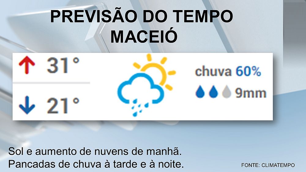 A previsão do tempo para Alagoas, divulgada pelo boletim da Sala de Alerta da Secretaria de Meio Ambiente e Recursos Hídricos, era de uma segunda-feira nublada com algumas chuvas, e até de predomínio de sol em algumas áreas, mas o tempo mudou e a chuva deve predominar em todas as regiões do Estado.