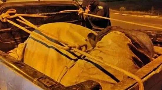 Durante as buscas no automóvel, a vaca, aparentemente sedada, foi localizada escondida e amarrada embaixo de uma lona na carroceria. Os agentes também encontraram medicamentos e seringas.