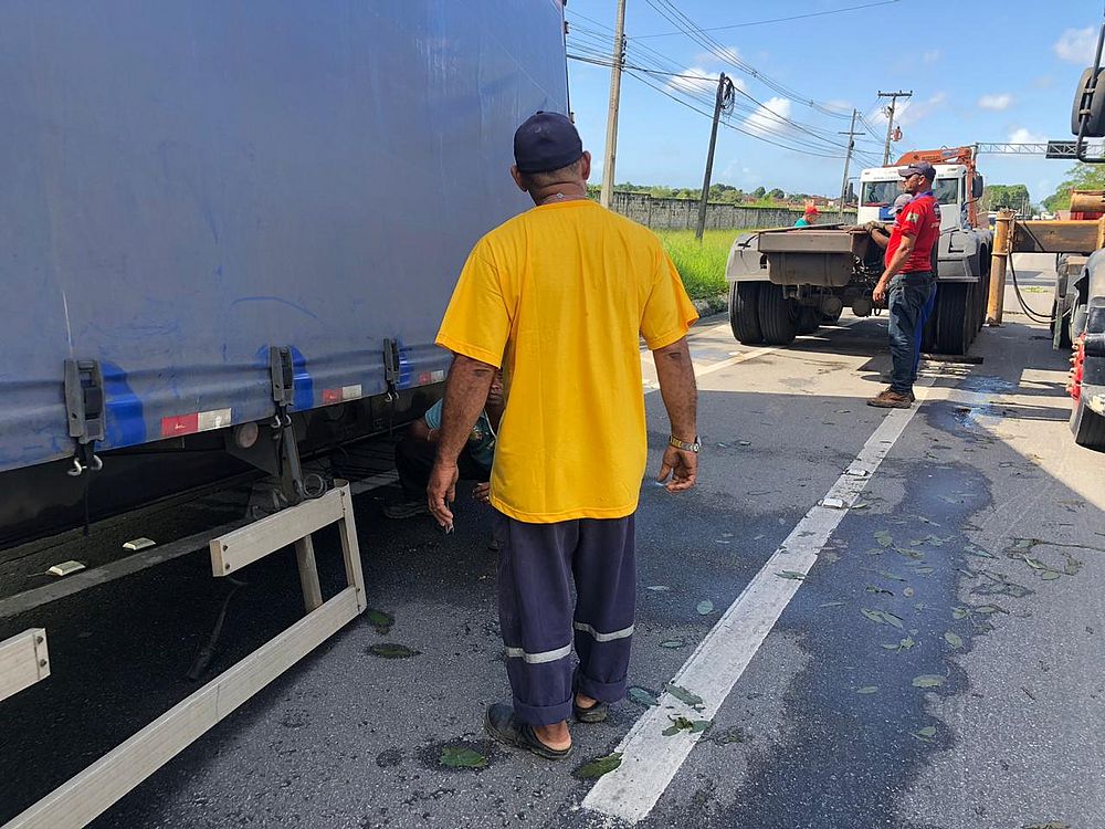 | Carreta começa a ser retirada da pista em ação da PRF / TV Pajuçara (Henrique Pereira) |