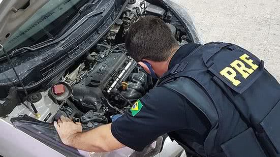 Após busca no veículo, verificou-se que a placa aparente pertencia a outro do mesmo modelo. Em consulta aos sistemas, foi identificado que o original tinha sido objeto de roubo/furto, registrado na cidade de Recife/PE.