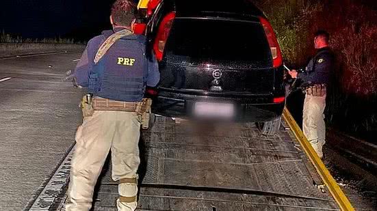 O veículo, de modelo GM/Corsa, cor preta, estava parado, sem ninguém dentro. Após avistar o carro, a equipe da Polícia Rodoviária Federal (PRF) consultou os sistemas e identificou que o veículo estava com informação de ocorrência de roubo/furto registrada no dia 23 de fevereiro de 2022.