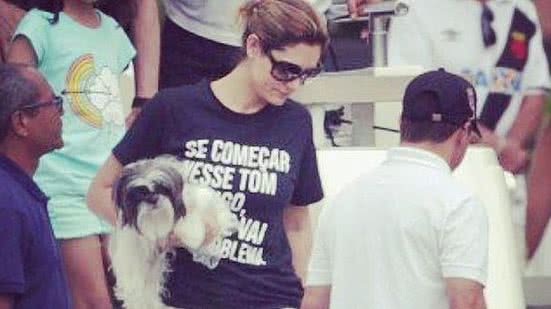 A camisa estampava a inscrição "se começar nesse tom comigo, a gente vai ter problema".