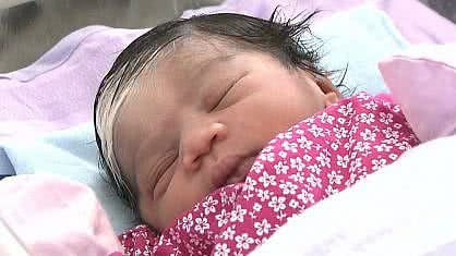 Laís Vanessa nasceu às 5h50, na maternidade Frei Damião, localizada na capital paraíbana. A condição que a fez nascer com a franja branca passa de geração para geração e se trata de uma alteração na produção de melanina.