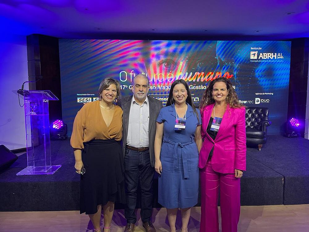 Dani Maciel (Diretora ABRH Brasil), Paulo Sardinha (Presidente ABRH Brasil), Jennifer Lins (Presidente ABRH-AL) e Carla Caracol (Palestrante)