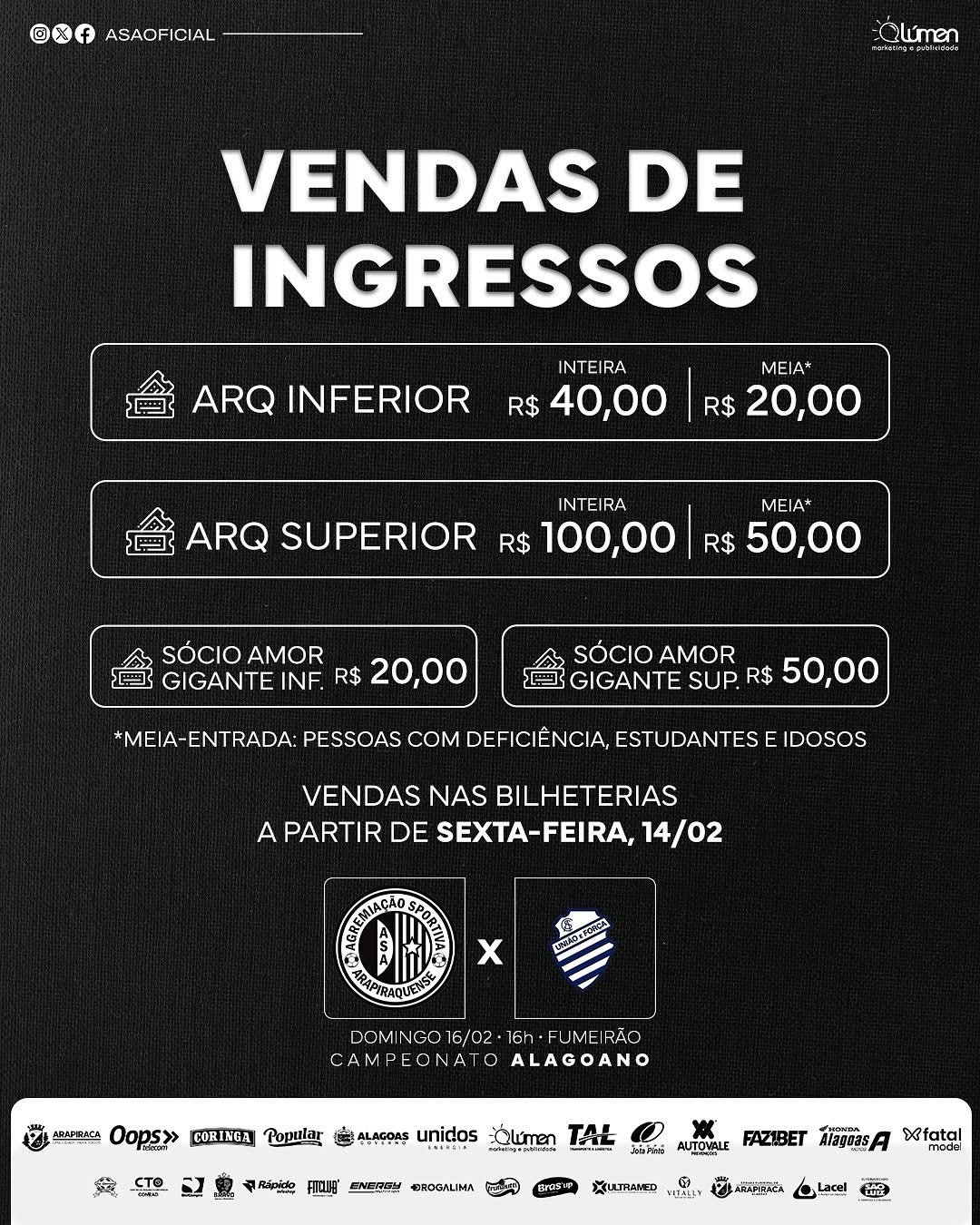 Exigimos que a diretoria do ASA corrija essa falha imediatamente, garantindo a venda da meia-entrada de forma justa e acessível, conforme determina a lei.