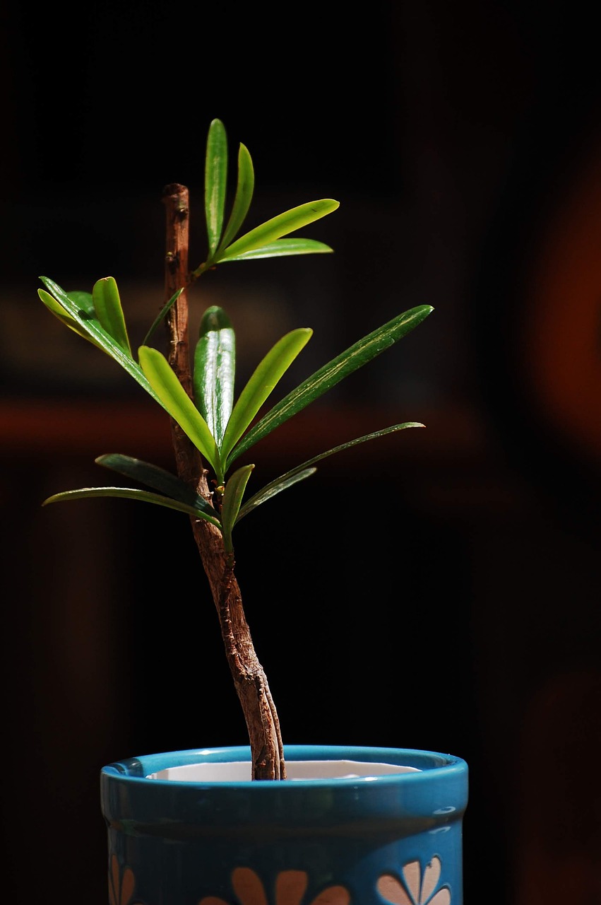 Simples de cuidar, o podocarpo também pode ser propagado através da estaquia, para isso basta que se corte um galho de crescimento recente com alguns centímetros de comprimento, remova as folhas próximas à e plante em um vaso com solo bem drenado, mantendo a umidade com regas frequentes, sendo indicado o uso de um indutor de enraizamento, porém apesar da facilidade desse método a planta demora muito mais a crescer e se desenvolver.
