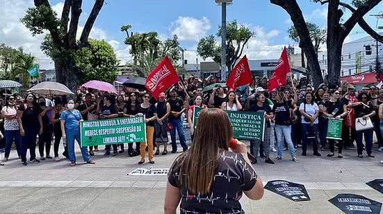 A suspensão do piso salarial nacional da enfermagem por decisão do ministro Luís Roberto Barroso, do STF, instituído por Lei em R$ 4.750, estabeleceu o prazo de 60 dias para que seja esclarecido o impacto financeiro decorrente do advento da legislação. Renilda Barreto, presente na manifestação desta manhã, falou sobre a decisão. "O Supremo Tribunal Federal concedeu uma liminar que suspende (a Lei) por 60 dias, afirmando que não tinha a fonte de custeio. A fonte de custeio não é da responsabilidade dos profissionais das instituições. As instituições têm condições para isso, porque é a enfermagem que dá a rotatividade financeira dos hospitais. Nós somos mais de 80% dentro das instituições da saúde”, afirmou Renilda.
