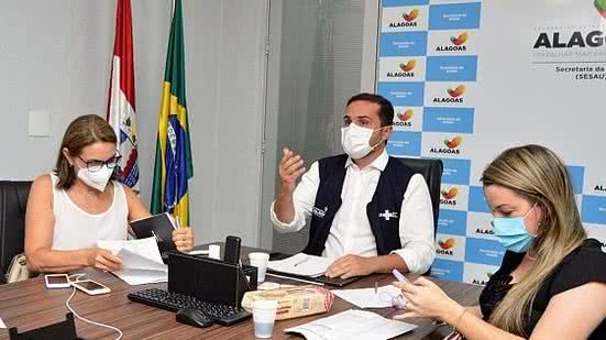 Os profissionais de saúde da Rede Pública que atuam no enfrentamento da pandemia do novo coronavírus serão os primeiros a serem vacinados contra a Covid-19. O anúncio foi feito pelo secretário de Estado da Saúde, Alexandre Ayres, nesta terça-feira (12), em reunião com o Conselho Estadual de Saúde de Alagoas (CES/AL) e o Conselho de Secretarias Municipais de Saúde de Alagoas (Cosems/AL). No encontro, Ayres antecipou à imprensa pontos do Plano Estadual de Imunização, que foi elaborado pela Secretaria de Estado da Saúde (Sesau) em parceria com outros órgãos da área.