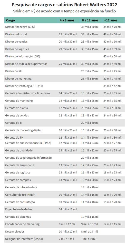 O salário inicial nas funções em alta para 2022 pode chegar a R$ 70 mil, como no caso de um diretor financeiro (CFO) experiente.