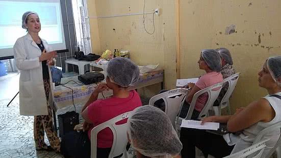 Antes da aula prática, a nutricionista da Semas, Vanessa Freitas, fez uma palestra sobre cuidados com a higiene pessoal e como manusear os alimentos. “Quem produz refeições deve ter vários cuidados, porque envolve a saúde do outro. A falta de higiene, o mal armazenamento de alimento, contaminantes físicos e químicos, substâncias tóxicas, microorganismos, tudo isso pode contaminar o alimento. Por isso é importante que os alunos tenham noções sobre cuidados e higienização no manuseio de alimentos e limpeza de áreas afins”, explicou.