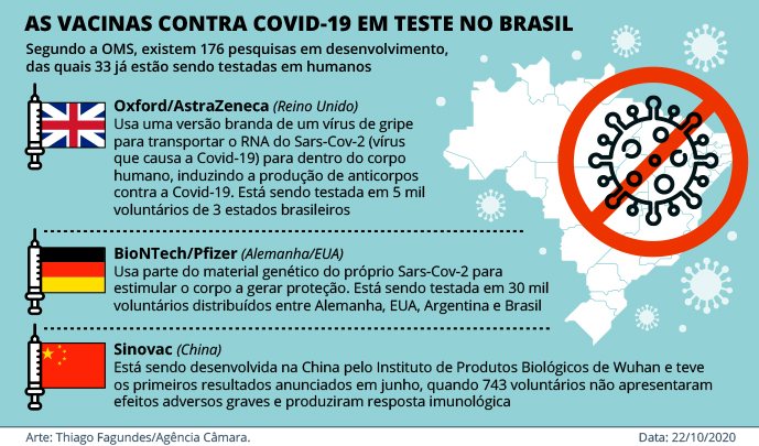 Há ainda outras propostas em tramitação na Câmara que antecipam e criam regras para a vacinação contra a Covid-19, para quando ela estiver disponível, como os PLs 4424/20, 4174/20 e 3982/20.