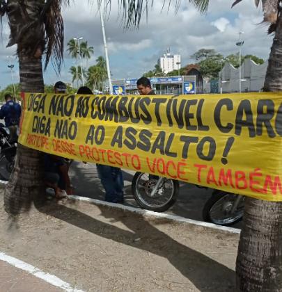 Os manifestantes levaram faixas com a frase "Diga não ao combustível caro, diga não ao assalto" e querem uma solução para evitar o crescimento no valor do combustível nos postos da cidade.