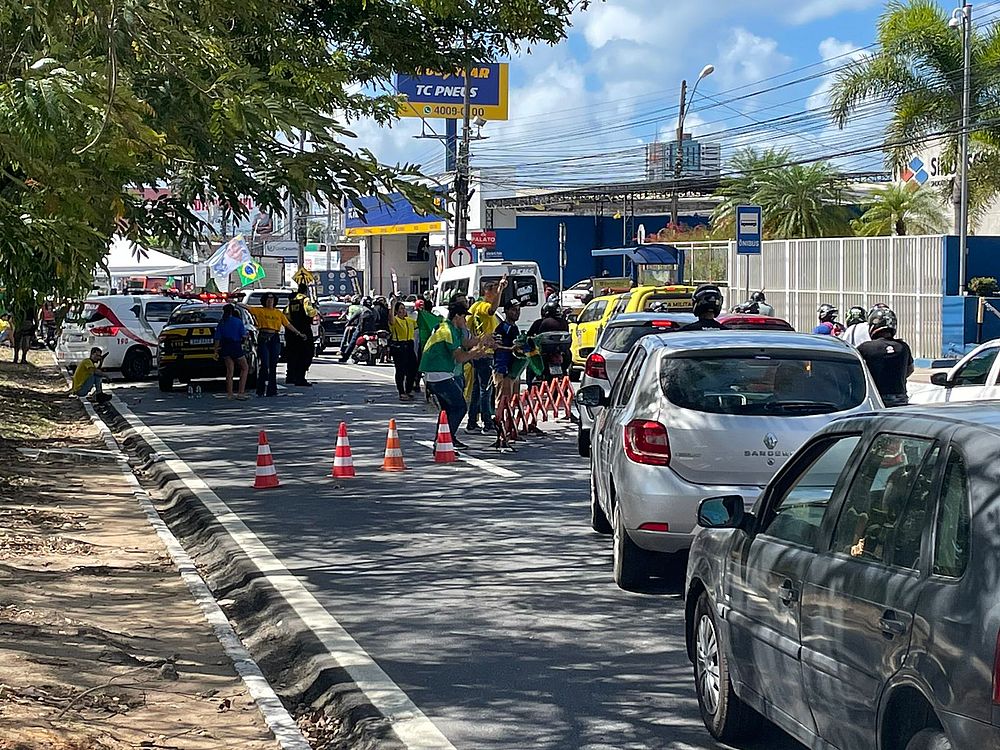 Mais de 12 horas depois e o protesto realizado por apoiadores do presidente Jair Bolsonaro (PL) continua na Avenida Fernandes Lima, em Maceió. Duas faixas da pista, no sentido Tabuleiro/Centro, estão bloqueadas, com a atualização das 8h30, e o trânsito segue travado no início desta manhã. Apenas a faixa azul foi liberada para o tráfego de veículos.