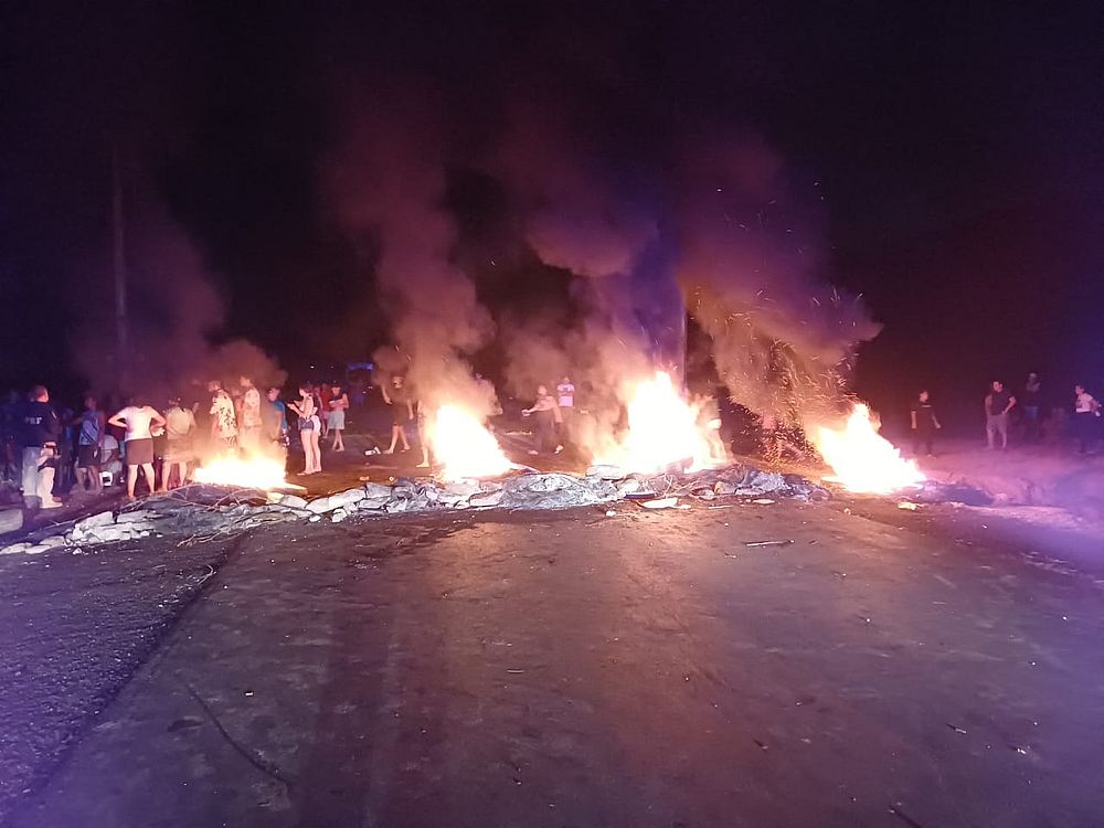 Imagens obtidas pela reportagem do TNH1 mostram um incêndio no trecho da BR-416 durante esta madrugada. Ele foi provocado após dezenas de pessoas colocarem entulhos atravessados na pista e atearem fogo. O objetivo é chamar a atenção das autoridades para a investigação do caso.