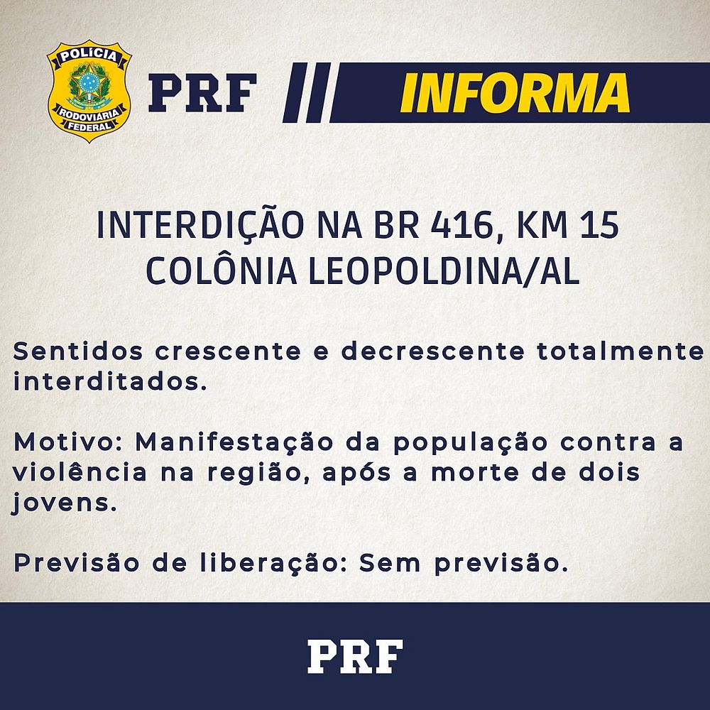 O protesto de familiares e amigos de dois adolescentes mortos durante uma ação policial, no município de Colônia Leopoldina, no interior de Alagoas, se estendeu até a manhã desta quarta-feira (16) e a rodovia BR-416, de acesso à cidade, continua bloqueada. A manifestação teve início na tarde de terça (15).