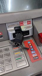 A vítima é direcionada por telefone por alguém da quadrilha que se passa por um funcionário da agência - que solicita a senha do cartão - e, enquanto o cartão está preso, outro integrante da quadrilha realiza transações, empréstimos e saques.