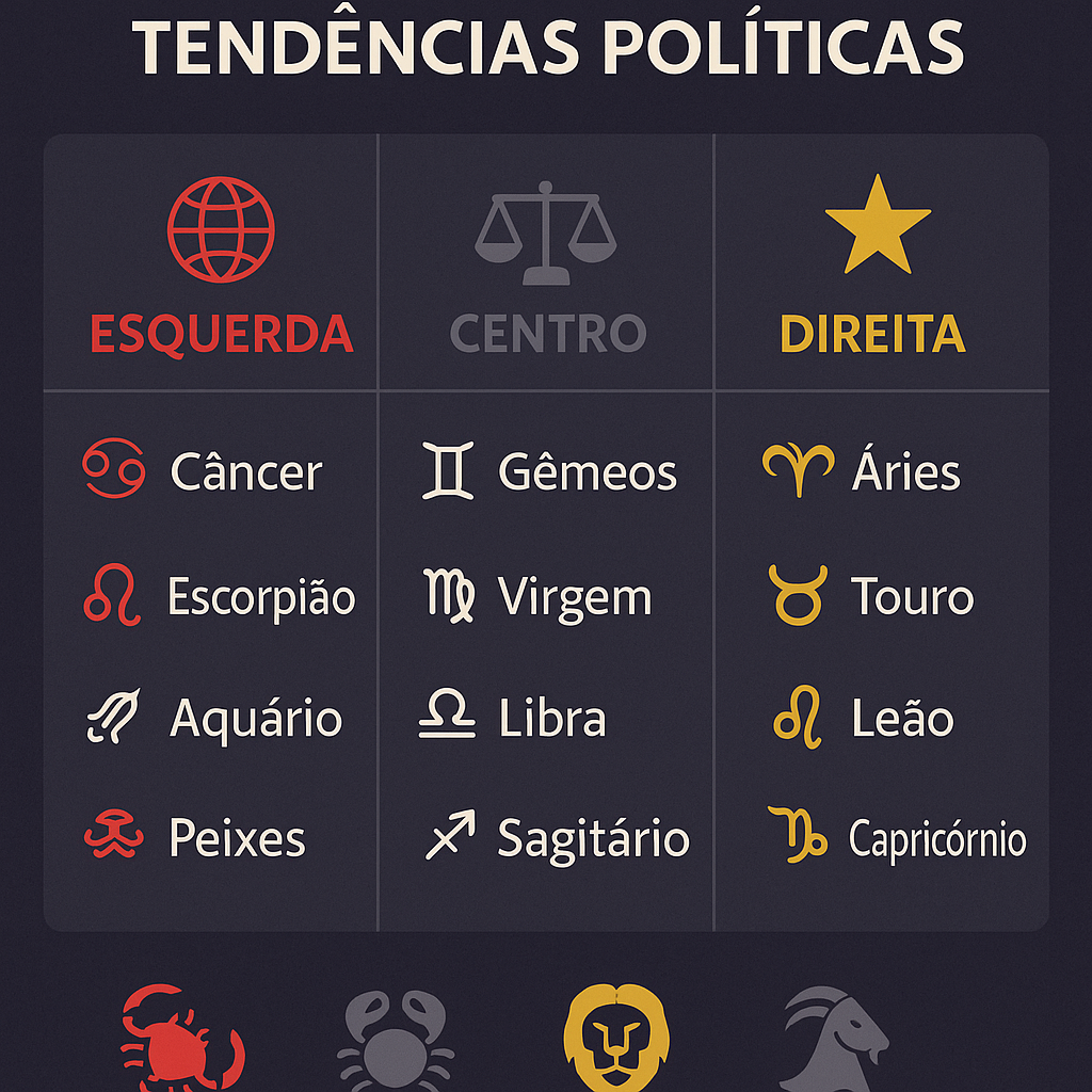 Será que os astros também influenciam na forma como enxergamos a política? De acordo com interpretações astrológicas, os signos do zodíaco carregam características comportamentais que podem indicar maior afinidade com ideologias de esquerda, centro ou direita.