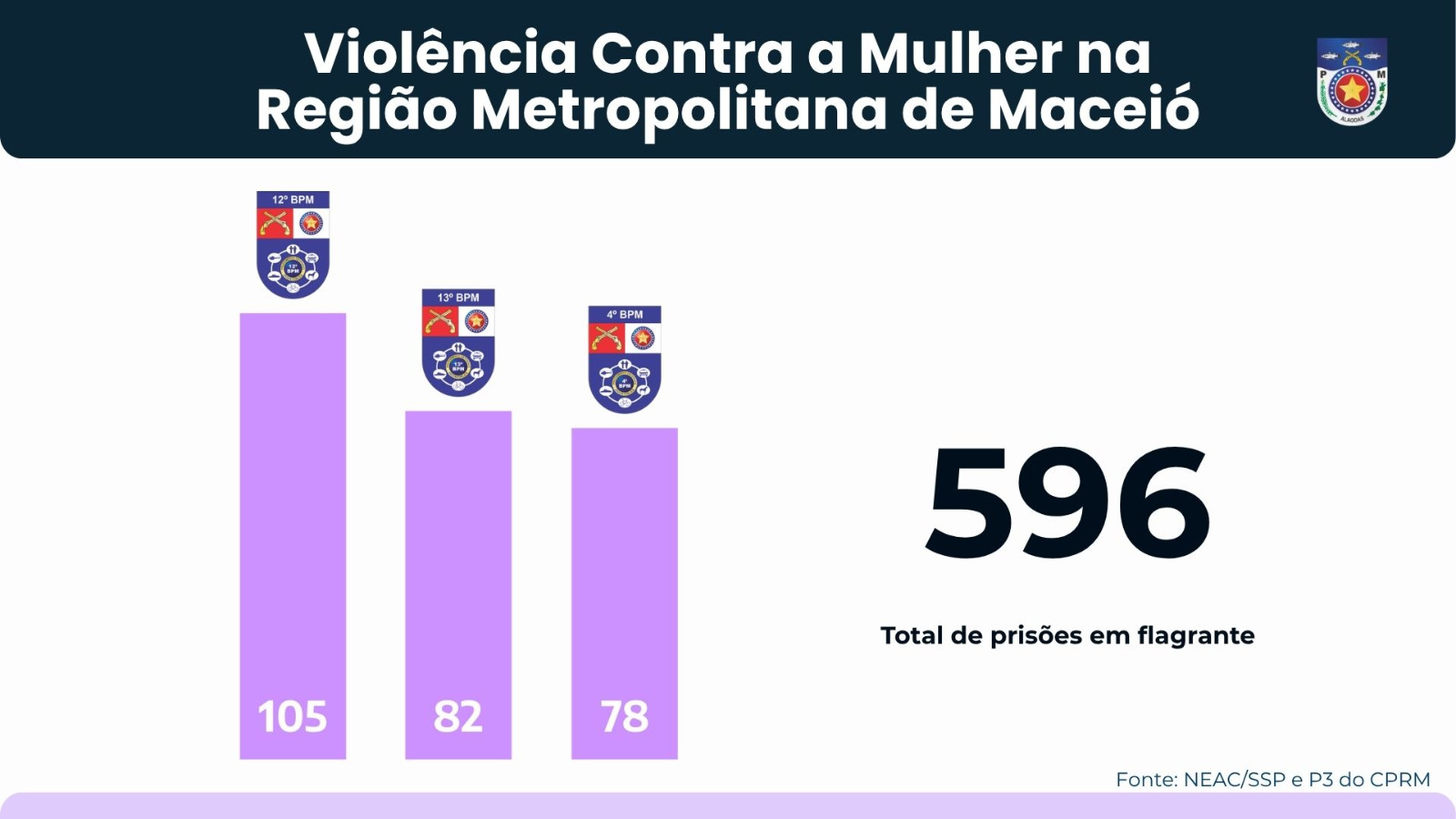 O enfrentamento à violência contra a mulher ganha ênfase durante o Agosto Lilás, mas o combate desenvolvido pela Polícia Militar de Alagoas (PM-AL) é ininterrupto. Em 2025 – de janeiro à primeira semana de agosto –, somente na Região Metropolitana de Maceió, foram registradas 4.380 ocorrências relacionadas à Lei Maria da Penha (Lei 11.340/2006).