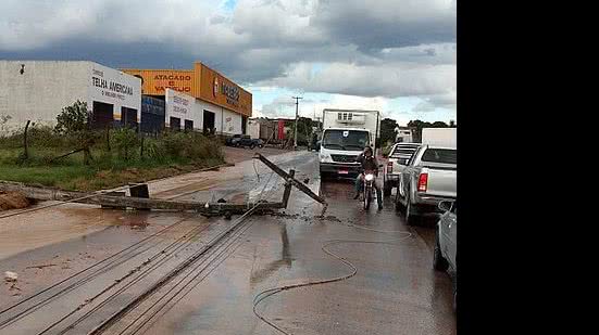 Uma fila de carros se formou no local e o trânsito ficou lento. Fios de alta tensão ficaram estendidos ao chão.