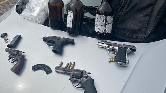 As quatro armas de fogo dos criminosos e o carro usado por eles foram apreendidos e apresentados na delegacia.