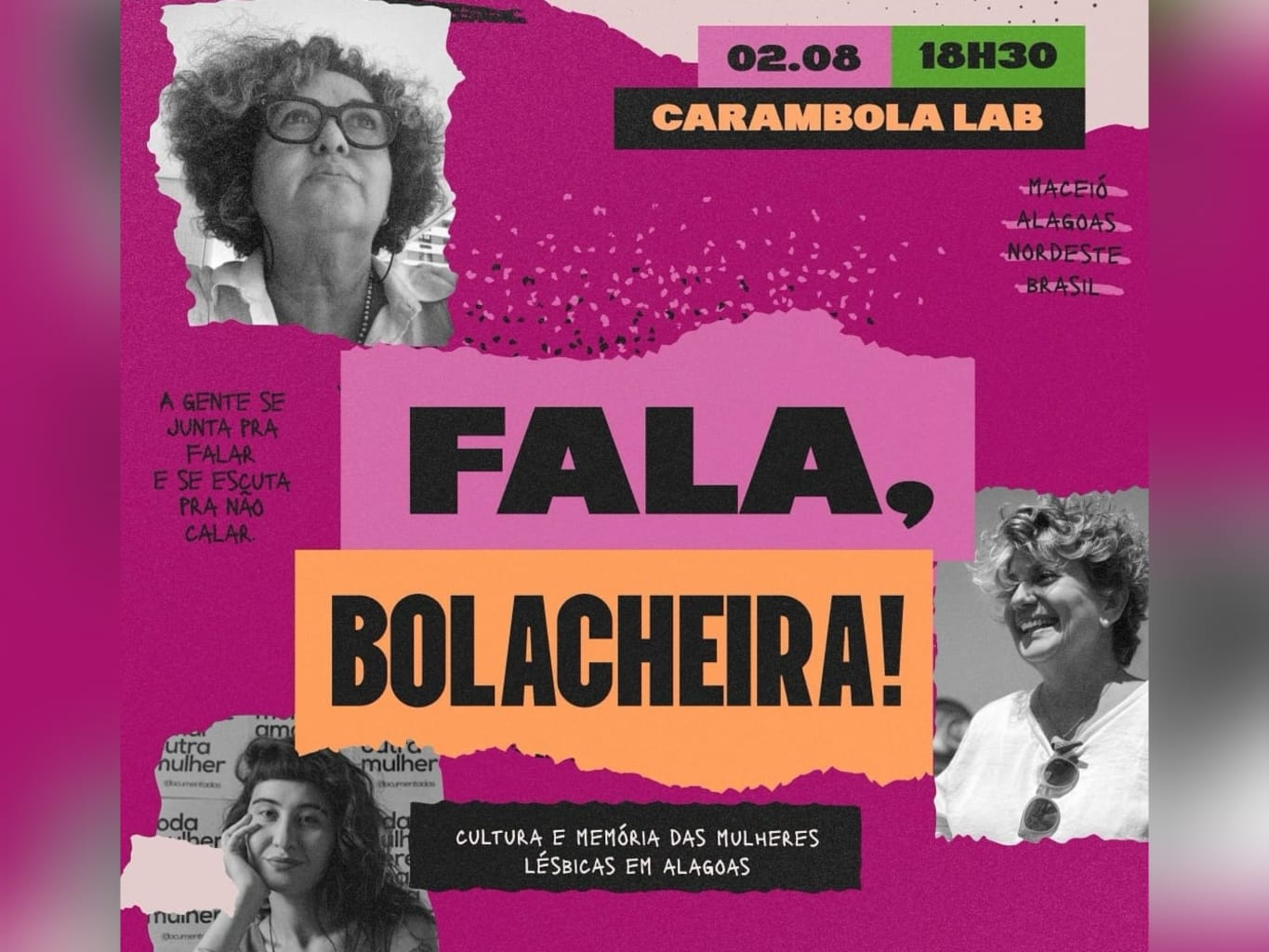 É um evento inédito e gratuito que dá palco, memória e potência às mulheres lésbicas de Alagoas. Será uma noite com rodas de conversa, exposição fotográfica, pocket shows, intervenção urbana e muito mais — pra celebrar quem somos, o que sentimos e tudo que enfrentamos juntas. Porque toda bolacheira é um arquivo vivo. E a gente tá prontíssima pra contar nossas histórias. Anota: 2 de agosto no Carambola Lab, no coração do Jaraguá, em Maceió.