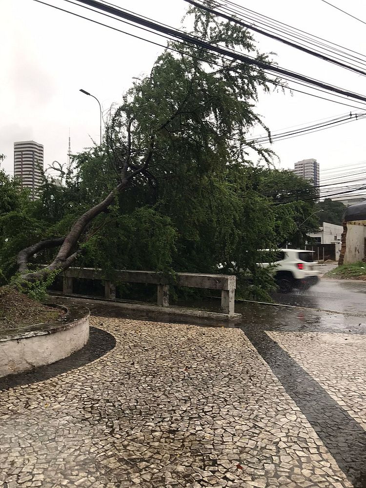 No bairro Poço, outra árvore de grande porte caiu e interditou parcialmente a Rua Comendador Calaça.