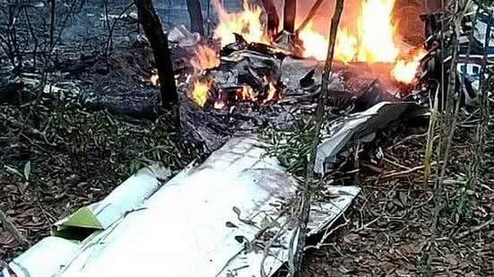 O Corpo de Bombeiros está no local do acidente e tenta apagar as chamas. A aeronave ficou totalmente destruída.